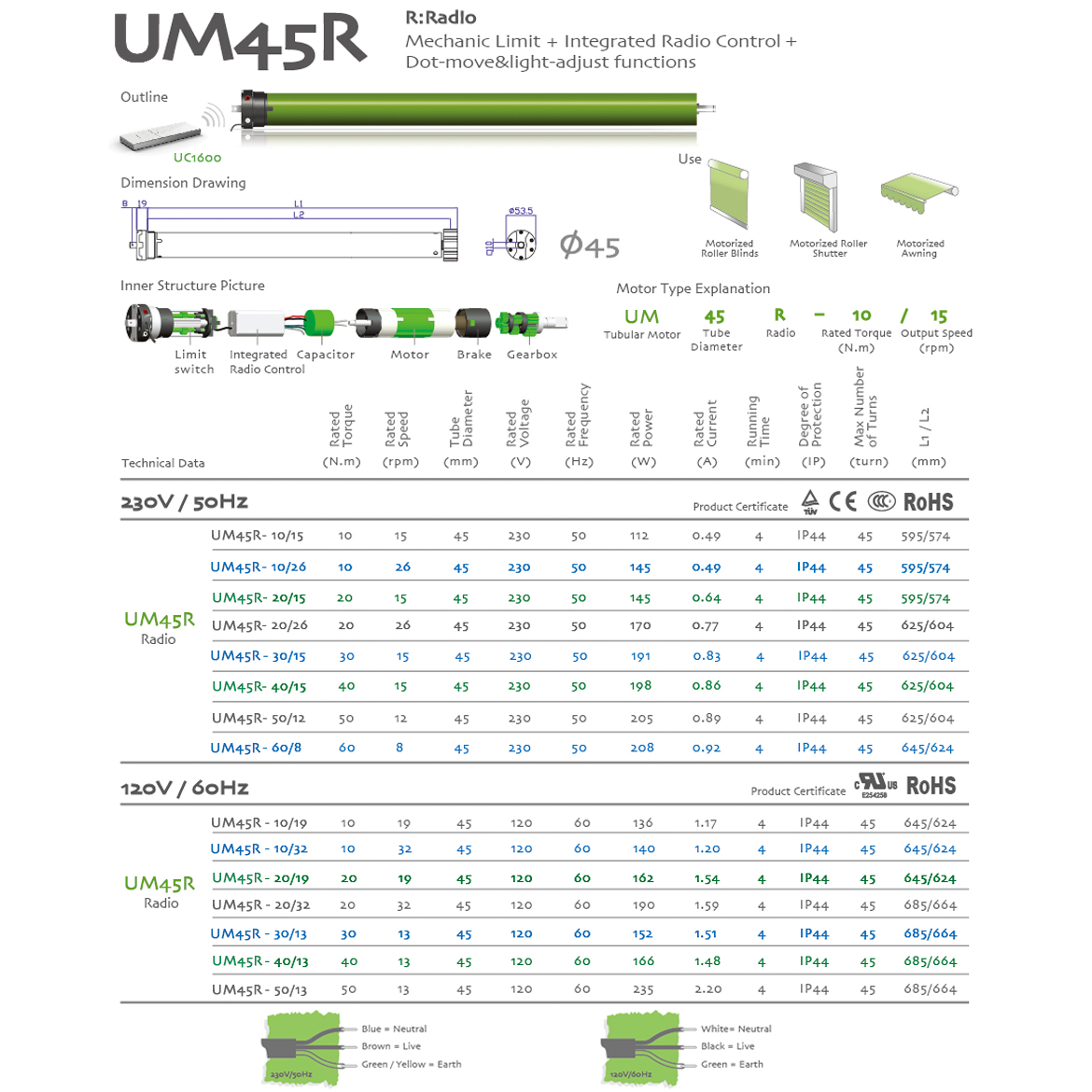 R:Radio/Mechanic Limit+Integrated radio control+jogging & tilt